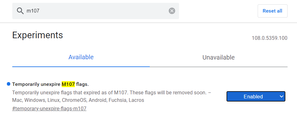 Die Option "Temporarily unexpire M107 flags" muss auf "Enabled" oder "Aktiviert" stehen. Danach erst erscheinen alle nötigen Optionen.