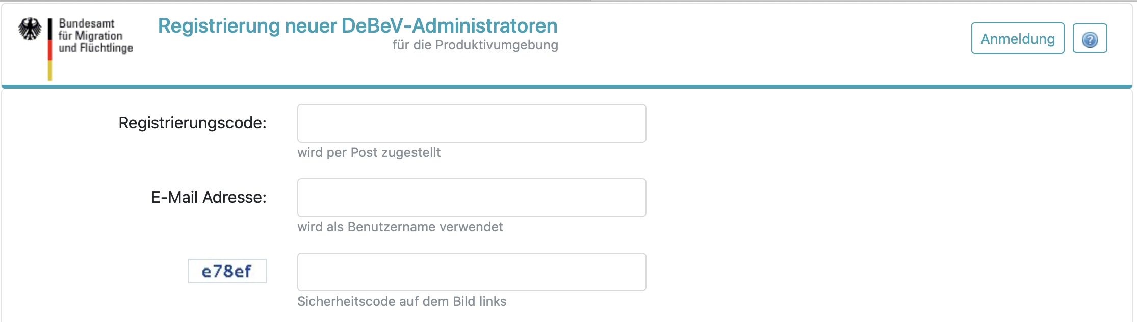 Hier tragen Sie bitte Ihre Benutzer-Daten aus der BAMF-DeBeV ein.